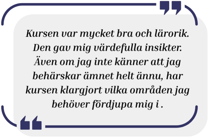 Om du har några frågor om kursen är du välkommen att chatta med oss (i rutan nere till höger) eller skicka ett mejl till oss.